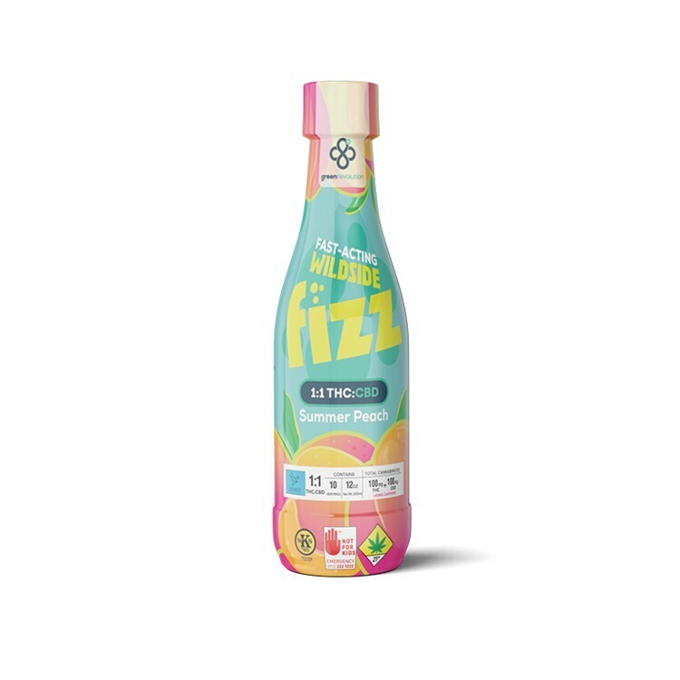 Savor the bright, refreshing taste of Summer Peach WildSide Fizz. This fast-acting beverage features a balanced 1:1 ratio of THC to CBD, delivering a consistent and approachable experience in every sip.