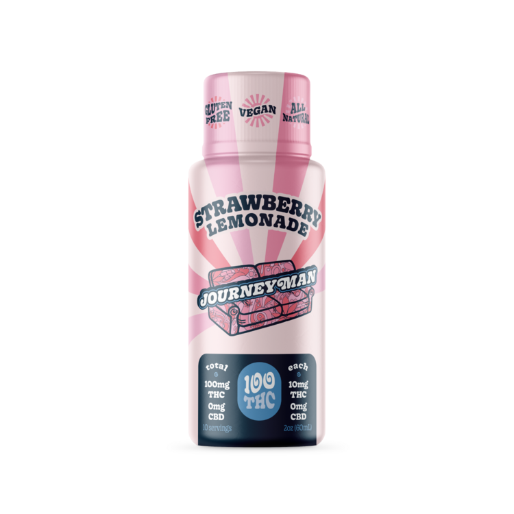 Strawberry Lemonade – the perfect balance of sweet and tart packed with THC. Our weedy spin on a deliciously radical classic. -- Vegan, Gluten Free and All-Natural · Made from scratch in-house with a recipe that complements the cannabis -- 100mg THC · 2oz bottle 10 capfuls, 10mg THC per capful DOH Compliant