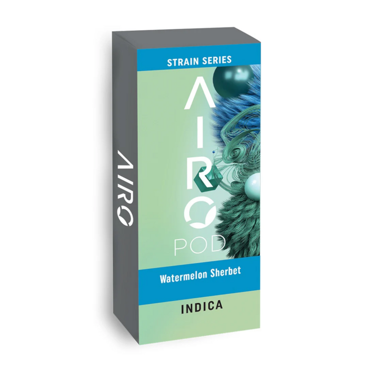 Indulge in yummy, tingly full-body relaxation with Watermelon Sherbet. Watermelon Sherbet is an Indica-dominant strain that’s perfect for unwinding after a long day to a calm, dreamy state. As you inhale, vivify your palate with sweet, earthy tastes of luscious, fruity terpenes Limonene, Beta-Caryophyllene, and Beta-Myrcene. As you exhale, quickly feel powerful euphoria rinse away your tension as the rainbow aromas fill the air. -- Airo Brands Strain Series consists of high-potency, pure distillate oil blended with 100% naturally sourced terpenes true to the cannabis plant. Our unique terpene profiles give you a classic strain taste and feel. -- AiroPod Cartridges are only compatible with the AiroPro and AiroSport Vaporizer. DOH Compliant