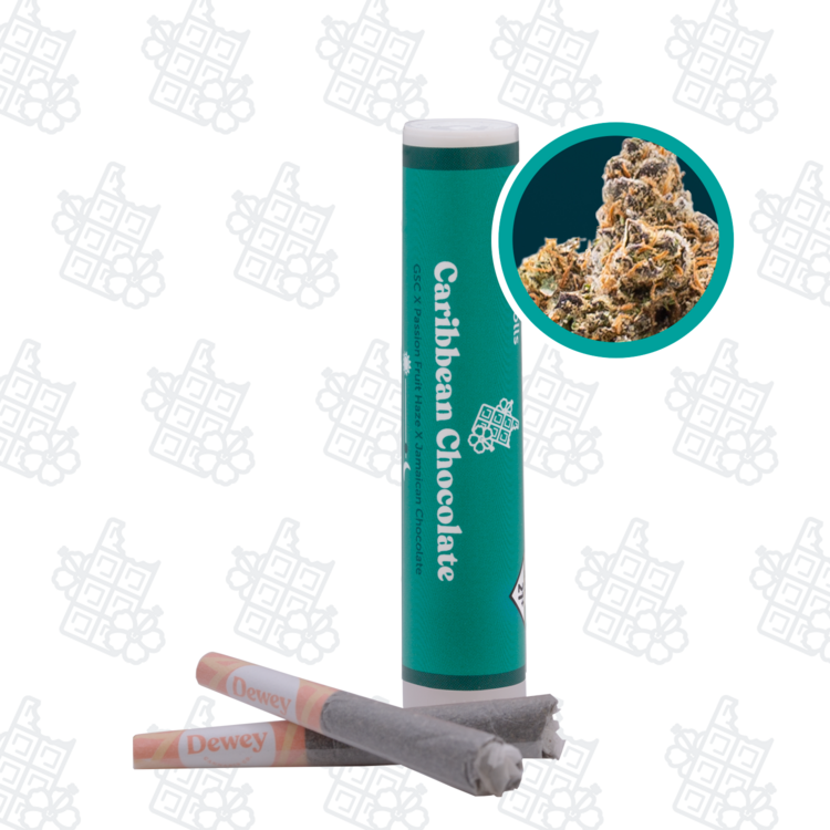 Full Flower. Bursting with flavor. Each Dewbie is made with 0.5g of full flower that has been cured under the same slow and controlled curing process that our premium buds undergo. This ensures proper terpene and flavor retention that can be noticed with every puff of a Dewbie from the first down to the last. Try our Double Dewbie 2 packs or stock up with our Dewbie 10 packs that come in a crush resistant box. Well, if you’ve also picked up a jar of Caribbean Chocolate, you might experience some déjà vu. The chocolatey flavor will coat your mouth from the first puff and leave you in a blissfully euphoric experience. Caribbean Chocolate is a great “kick up your feet strain” without having to ask yourself “will I make be able to stay up until the end of this movie?” Effects Map: Indica Dominant Gentle, Serene, Euphoric Flavor & Aroma: Floral, Citrus, Sweet THC Range: 18-23% Terpenes: Myrcene, Limonene, Caryophyllene, 𝛼-Pinene, 𝛽-Pinene Total Terpenes of Flower: 0.95% Genetics: GSC x Passion Fruit Haze x Jamaican ChocolateGSC x Passion Fruit Haze x Jamaican Chocolate See More at https://deweycannabis.com/