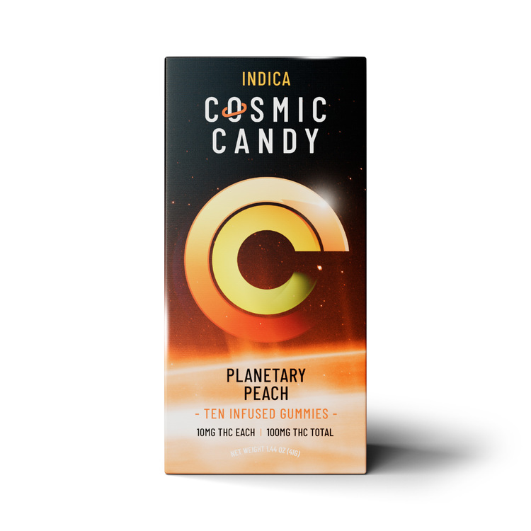 10mg THC per candy. Discover a new twist on an old favorite. Space out or explore the depths of the universe with our newest fruit gummies. These out-of-this-world flying saucers are a delicious addition to any day. Cosmic Candies are gluten free. DOH Compliant