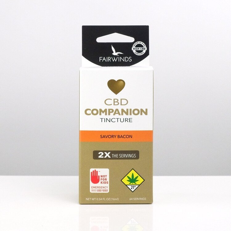 Looking to de-stress, provide comfort and agility, or return to youthful vigor? The Fairwinds Companion tincture is designed to do all this and more. Fairwinds believes in always providing the most effective products possible. Formulated using a 5:1 ratio that leverages the power of both CBD and THC, the Companion tincture has become a trusted, best-selling formula that provides effective results. Plus, with an all-natural smoky bacon flavor, the Companion CBD tincture tastes as good as it feels! Vegetarians need not worry! The bacon flavoring used is all-natural, however, it is not derived from animals. DOH Compliant