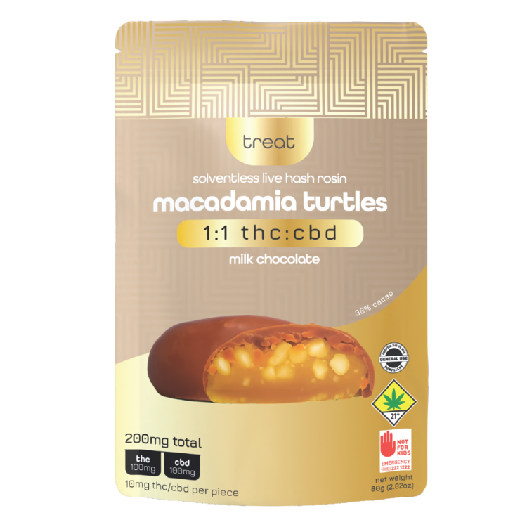 1:1 Live Hash Rosin Milk Chocolate Macadamia Turtles 100mg