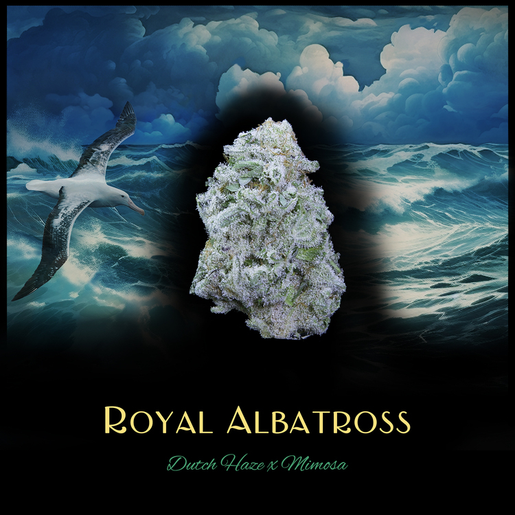 Indica 20% / Sativa 80%. Royal Albatross is a vibrant Sativa strain born from the energetic Dutch Haze and the citrusy Mimosa. This strain is perfect for those seeking a creative and uplifting experience, providing a burst of energy and mental clarity. The fragrance is a surprisingly refreshing blend of orange and skunk, instantly invigorating the senses. Royal Albatross delivers a crisp, clean high that enhances focus and creativity, making it an ideal daytime companion. Its flavors are bright and tangy, with a zesty citrus profile that leaves a delightful, lingering sweetness on the tongue. DOH General use compliant DOH Compliant