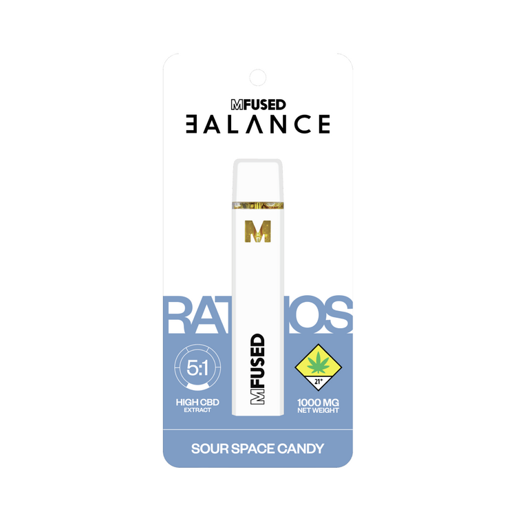 5:1 Sour Space Candy BALANCE RATIOS offer six unique blends of minor cannabinoids (CBD, CBG, CBN) to THC, the well-known psychoactive cannabinoid. The wider range of cannabinoids will work together to provide a more synergistic effects known as the “Entourage Effect” than just consuming high amounts of THC. Depending on the ratios, the (psychoactive) effects will differ due to the varying amounts of THC. The higher the ratio, the lower the THC. While the rest of the industry is obsessed with processing oil to maximize concentration and potency, MFUSED remains laser focused on selecting and cultivating only the finest material to deliver cannabis products as they were meant to be. Our advanced extraction technology and pioneering processes create the highest-grade oil concentrates, retaining and accentuating the naturally distinctive flavors and therapeutic attributes of cannabis. Follow our journey @mfusedculture. Features: - 1g of Full Spectrum Cannabinoids - 6 different ratios to best fit your needs - Proprietary polyextraction methods used to capture whole plant benefits - Pure Cannabis Derived Oil - Independently batch tested to ensure no harmful pesticides - Clean Green Certified [WA] - No Cutting Agents and/or Additives, EVER - Full Rechargeable Device via Micro-USB